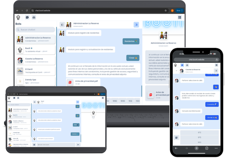 Con Booti, puedes crear cualquier aplicación que mantenga una interacción innovadora y profesional, resolviendo tareas digitales de manera eficiente y eficaz. Simplifica procesos y mejora la experiencia del usuario en cada interacción.